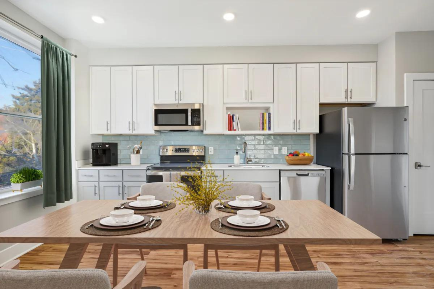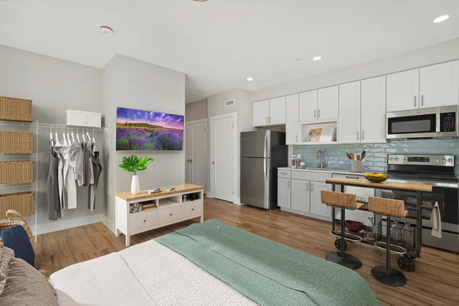 Whatever your medium for personal expression, 17 Mississippi’s culturally enriching atmosphere is the perfect setting in which to explore it. Stainless steel appliances combine with unique blue backsplashes and two-toned cabinets to provide an unparalleled living experience that balances comfort and artistry. Feed off the collective energy that surrounds you in shared artist spaces and relaxed common areas—and thrive in ways you never imagined possible.
